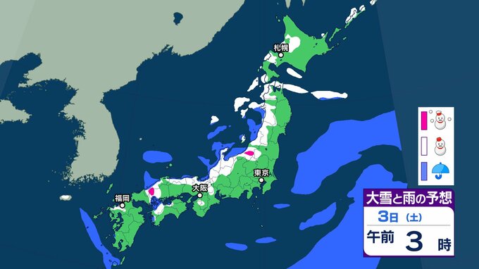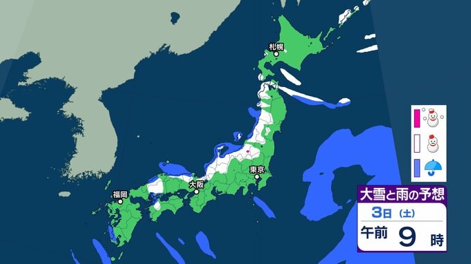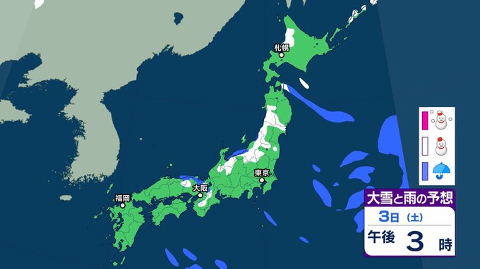 【新春寒波】1月2日ごろから日本海側を中心に大雪のおそれ「新春Uターンラッシュに直撃か」 年明けから冬型の気圧配置が強まる見込み 【気象庁 雪雨シミュレーション/午後5時更新】 RSK山陽放送 2025年12月29日(月) 08:41 国内 天気 1月3日(土)の雪と雨のシミュレーションをみる 3日(土)3時間ごとの雪と雨のシミュレーション【画像㊲~㊸】 【画像㊲】 【画像㊳】 【画像㊴】 【画像㊵】 【画像㊶】 【画像㊷】 【画像㊸】
