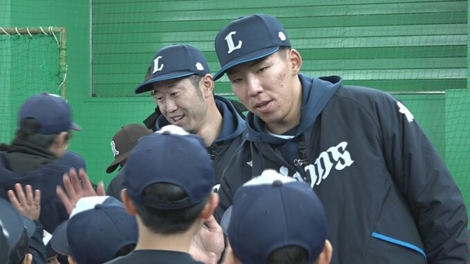この日は先輩の外崎選手とともに弘前市の野球教室で講師を務めた。「子どもたちの声を間近に聞くことがあんまりない。心のリフレッシュ。元気な姿を見て自分もがんばりたいと思う」。21日に帰省してからは故郷の大鰐町で過ごしている。大好きな地元の温泉につかり、その温泉水を使って育つ地元の特産「大鰐温泉もやし」を食して英気を養っている。