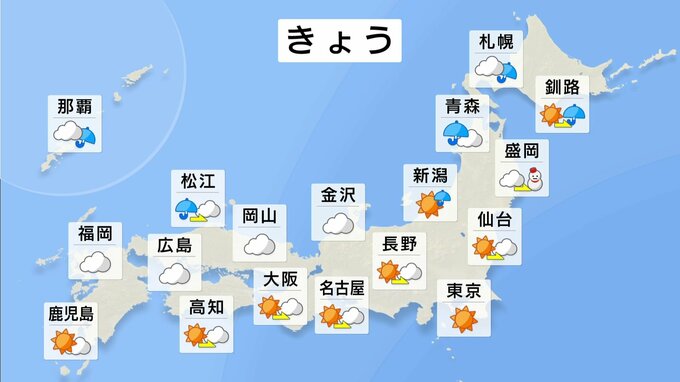 北海道や東北北部は断続的に雨や雪が降り、雷を伴うところもあるでしょう。山陰や沖縄も不安定な天気で、北陸は夜遅くから雨が降り出す見込みです。そのほかは晴れ間のでるところが多いですが、西日本では次第に雲…
