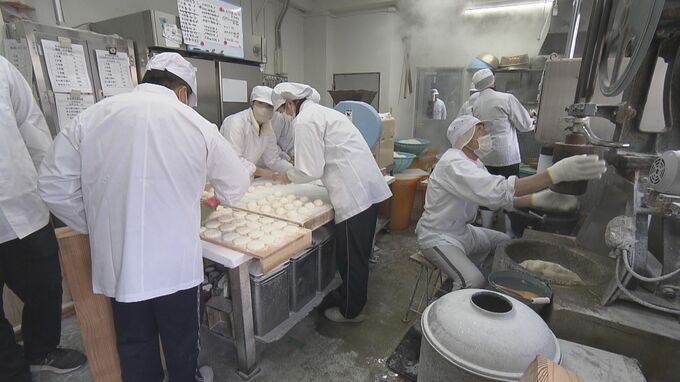 年末の1週間で普段のおよそ20倍にあたる8トンの餅を作るということです。