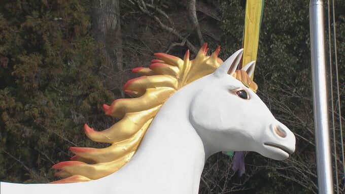 三重県津市で来年の干支「午(うま)」の「ジャンボ干支」が完成し、神社に奉納されました。