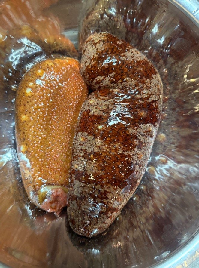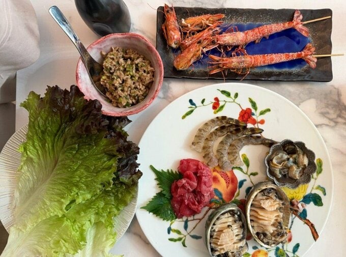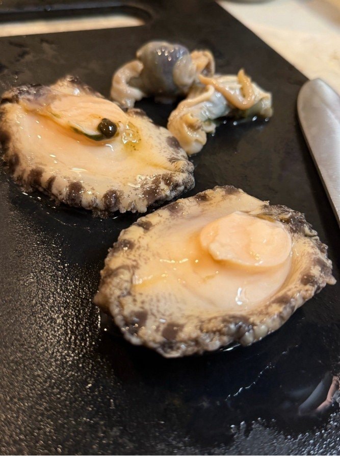 川﨑さんによると、朝、2つの業者から配達された魚介類は「まるで海鮮の宝箱」のようだったといいます。届いた食材には、川﨑さんが大好きというアワビや、奥様が好きな牡蠣、さらに新鮮な車海老、大きなナマコ、イクラ、タコ、明太子など多種多様な海の幸が含まれていました。