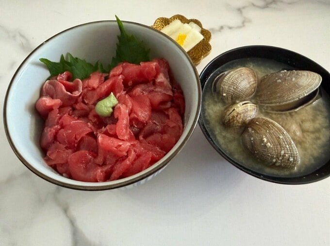 川﨑さんは朝食に「魚食わせろ!」とリクエストし、妻が作ってくれた中おち丼と蛤の味噌汁を楽しんだそうです。「口の中でとろける程柔らかいマグロの中おち」だったと満足げに記しています。
