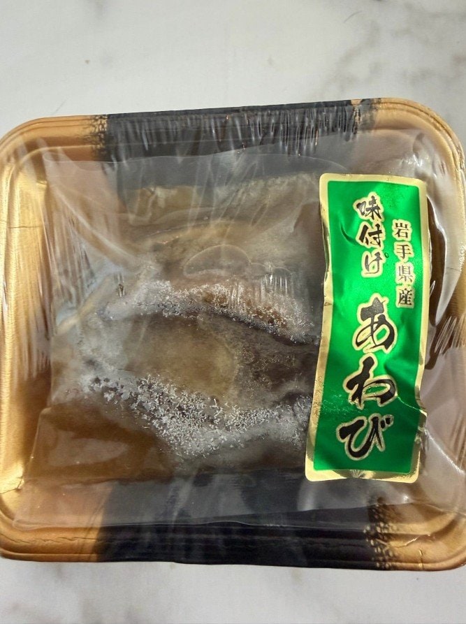 豊洲から届いた海鮮の中には、「岩手県産 味付あわび」も含まれていました。川﨑さんは特にアワビが好物とのことで、ブログ内で「アワビ アワビ」と喜びを表現しています。