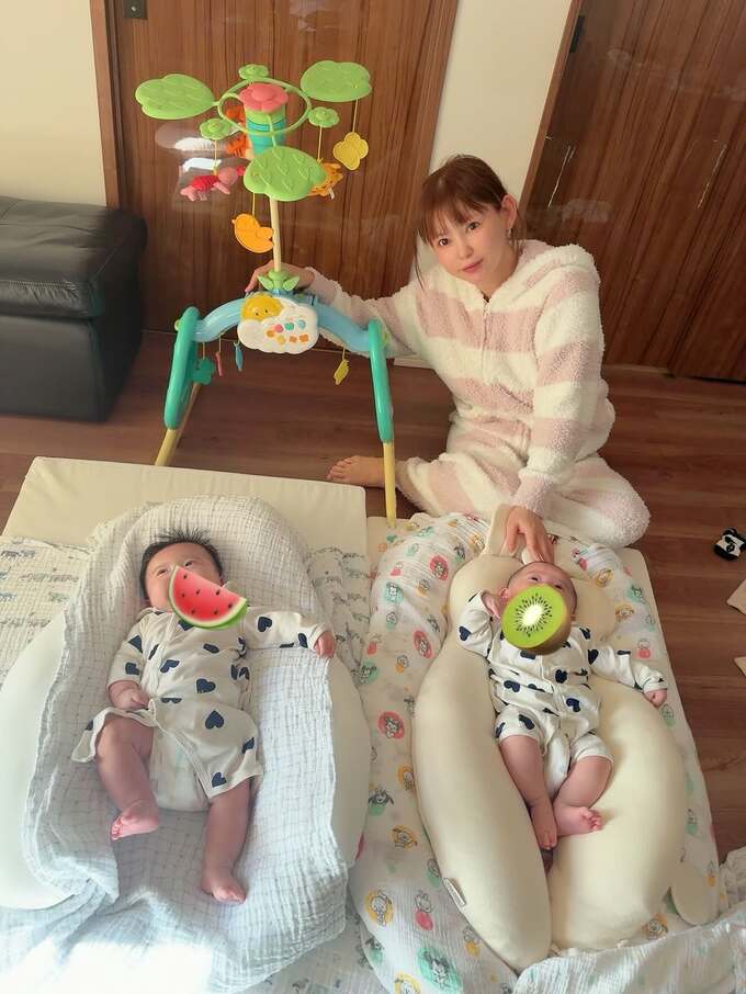 合わせて「インスタやままリンクでみなさんから教えてもらえて良かったです!」と感謝を綴った翔子さんは、「お兄ちゃんは、最近弟を見てニコニコする頻度が増えてる気がする、ついにふたごを意識しはじめたか、、!?」と、以前から気になっている “初めて双子を意識する瞬間” への期待を表現。
