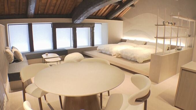 江戸時代に建てられた「米蔵」が、黒松のはりを残した宿に。