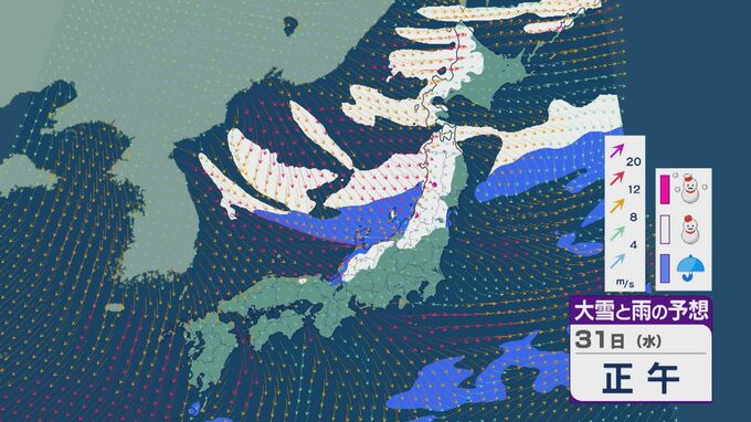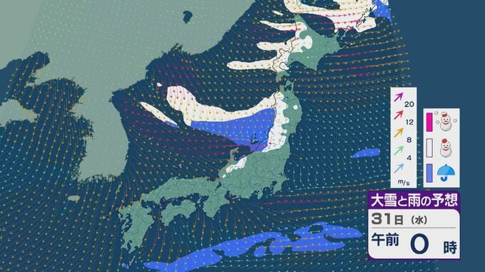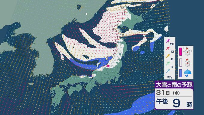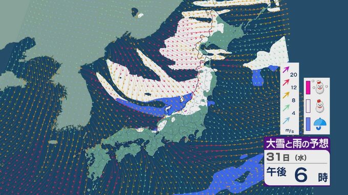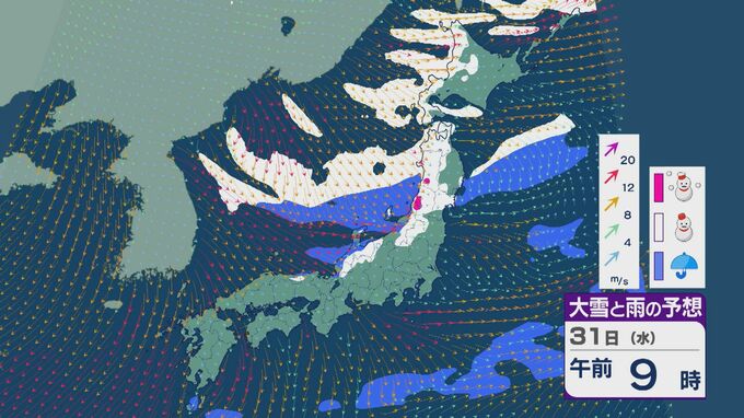 冬型の気圧配置で大みそかや正月は日本海側で雪が降りやすく大雪のところも その後の“仕事始め”のタイミングでさらに大雪や大荒れのおそれ 雪・雨と風シミュレーション 北陸放送 2025年12月29日(月) 17:06 国内 雪・雨と風の予想ですが、31日(水)は東北の日本海側や北海道で雪が降り、北陸でも次第に雪雲や雨雲が流れ込んできそうです。