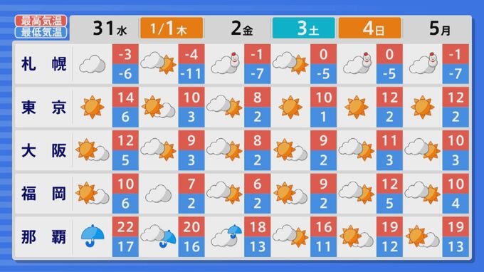 年末年始は、太平洋側では晴れるところが多いでしょう。