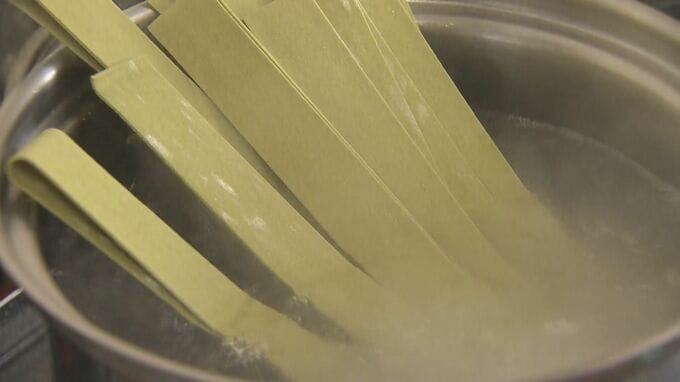 最終的に完成したのは、幅2センチの麺。試作品から比べると太さは10倍。