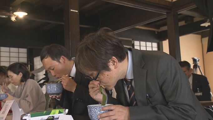 町の関係者へのお披露目会。課題だったそのぎ茶の風味はしっかりと出たのか。