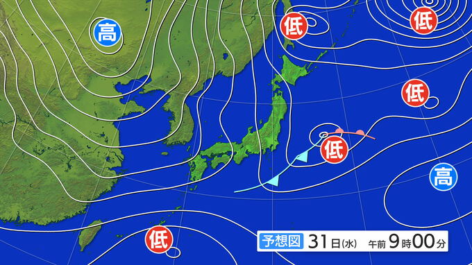 【画像①】はあす(31日)午前9時の予想天気図です。
