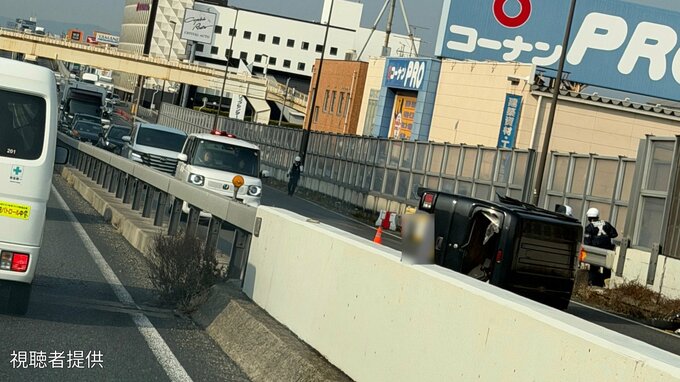 【国道2号】バイパス豊成付近で軽自動車が横転する事故 約2.5キロの渋滞発生中【岡山・南区】
