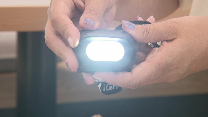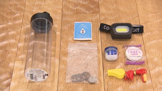 「防災ボトル。(中身は)手を使わない、頭にはめるヘッドライトですね。(子どもを)抱っこしたり、手が2つあっても足りないと思うので、手をあけておきたいんですよね」