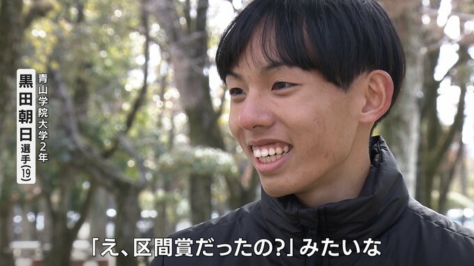 「もうびっくりしましたね本当に。え、区間賞だったの?みたいな。前半余裕を持って入って、後半上げるというレースプランを立ててはいたんですけど、前半はむしろ全然ペースが上がっていなくて『これちょっと終わったかな』っていうくらいの気持ちだったので(笑)本当に終わって記録を聞いた時には驚きでしたね」