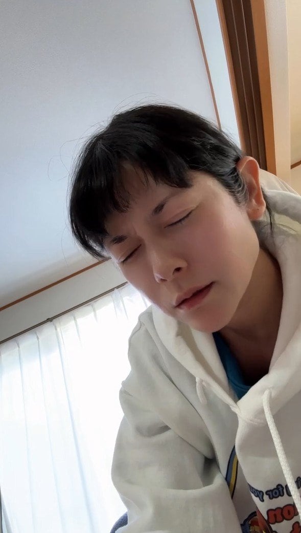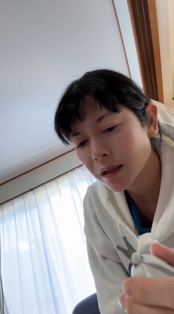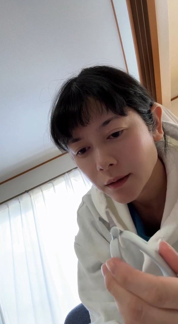 動画では、ハサミ型の爪切りを手にした真木さんが、目を細めて見えにくそうにしながら、赤ちゃんの爪を切っている様子が映し出されています。