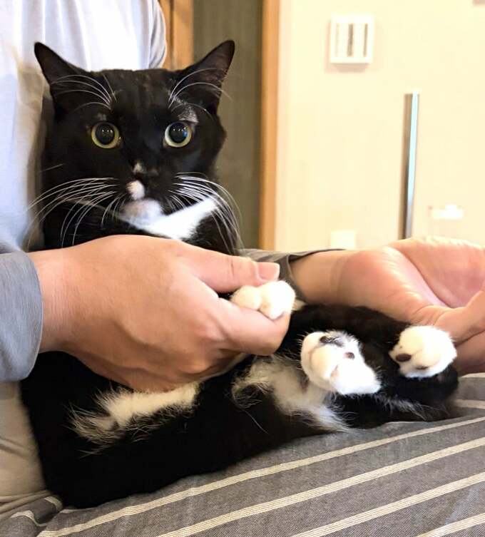 すると、藤さんは「問題はじゃこだね〜」と、保護されて4か月が経過したキジ猫『じゃこ天』について、「ごはんの時は、めっちゃスリスリしてるのに、触ろうとするとカシャカシャ爪音させて逃げちゃいます」と明かし、「せっかくのおもちゃも爪が引っかかってるし、やっぱり病院で切ってもらうしかないのかな」と心情を吐露。