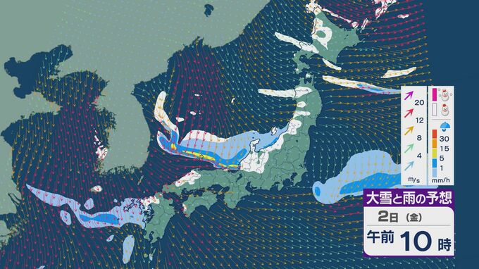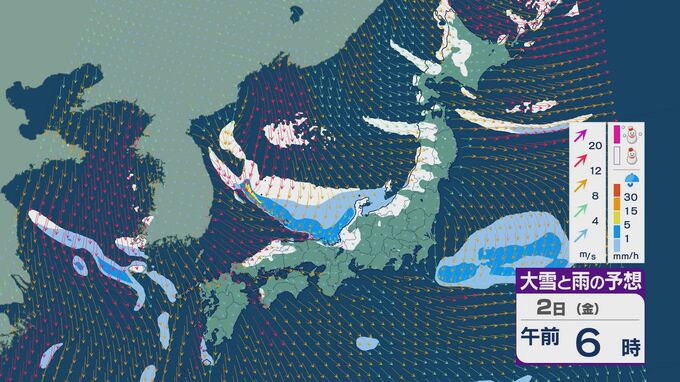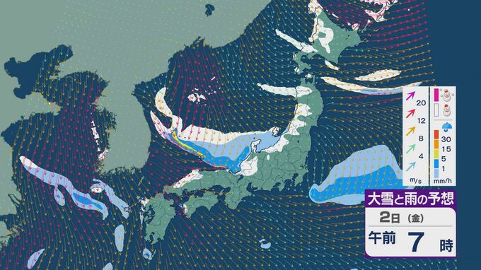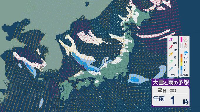 2日は、JPCZ=日本海寒帯気団収束帯による雪雲がより顕著になりそうです。