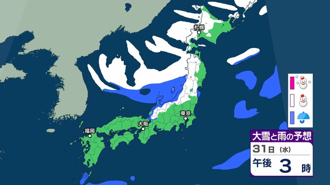 【新春寒波】日本海側を中心に「警報級の大雪」のおそれ→1月2日(金)ごろからはUターンラッシュに注意【気象庁 雪雨シミュレーション/31日午前9更新】 RSK山陽放送 2025年12月31日(水) 09:10 国内 天気 「雪と雨のシミュレーション」をみる 31日(水)3時間ごとの雪と雨のシミュレーション【画像②~⑥】 【画像②】 【画像③】 【画像④】 【画像⑤】 【画像⑥】