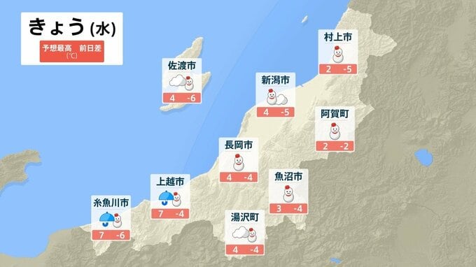 このため、雪か雨時々曇り、または雪時々曇りで、夕方まで雷を伴うところがありそうです。日中の気温もほとんど上がらず、肌寒くなりそうです。前日30日と比べて5℃ほど下がり、4℃前後となる所が多くなる見込みです。