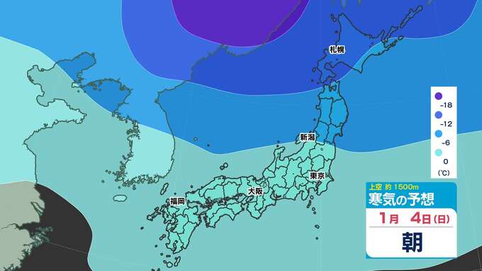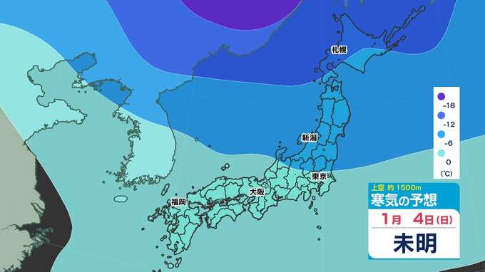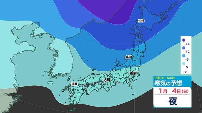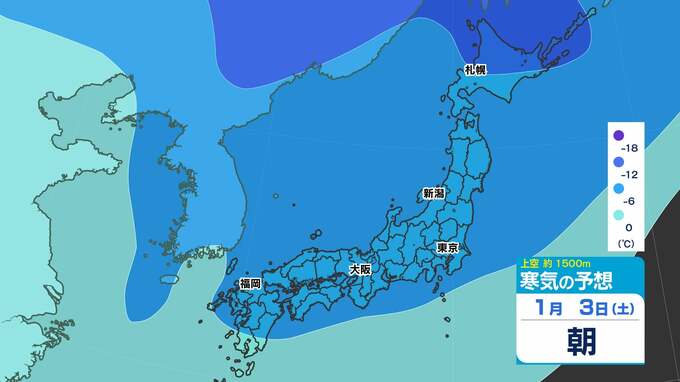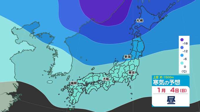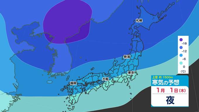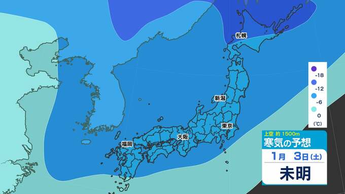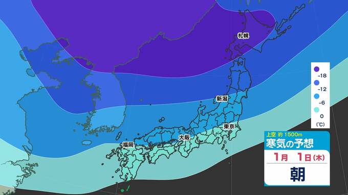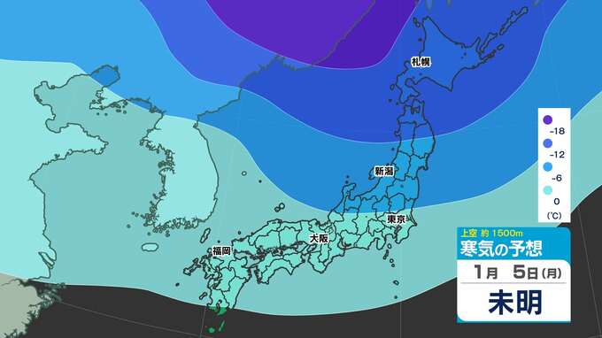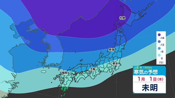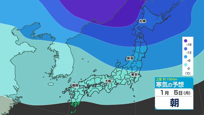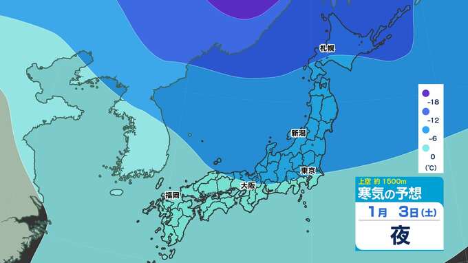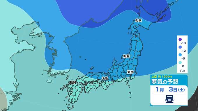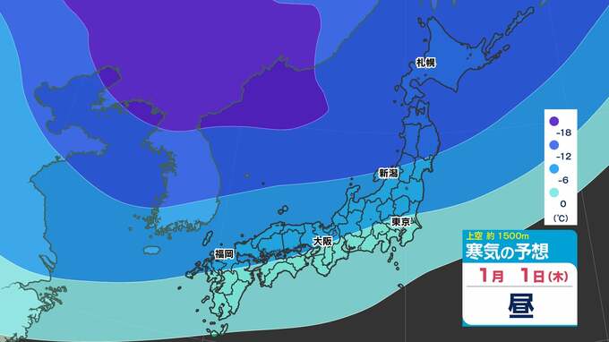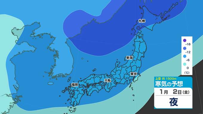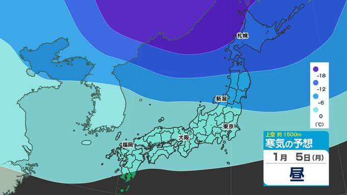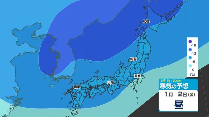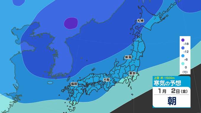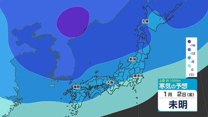 【東京首都圏 正月2日 雪かも】2026年スタートは新春寒波 寒いお正月【雪シミュレーション1月2日(金)/ 関東各都市の新年の週間予報(1月7日まで)】東京・神奈川・埼玉・千葉・群馬・茨城・栃木 南日本放送 2025年12月31日(水) 16:10 国内 天気 寒気のシミュレーション 元日~5日(月) 上空およそ1500mの寒気の予想です。2日(金)から3日(土)にかけて「平地で雪の目安」の「-6℃以下」寒気が、関東や九州をスッポリ覆う見込みです。画像で確認できます。 この記事をはじめから読む(リンク)→「東京首都圏 正月2日」2026年スタートは新春寒波 寒いお正月【雪シミュレーション1月2日(金)/ 関東各都市の新年の週間予報】
