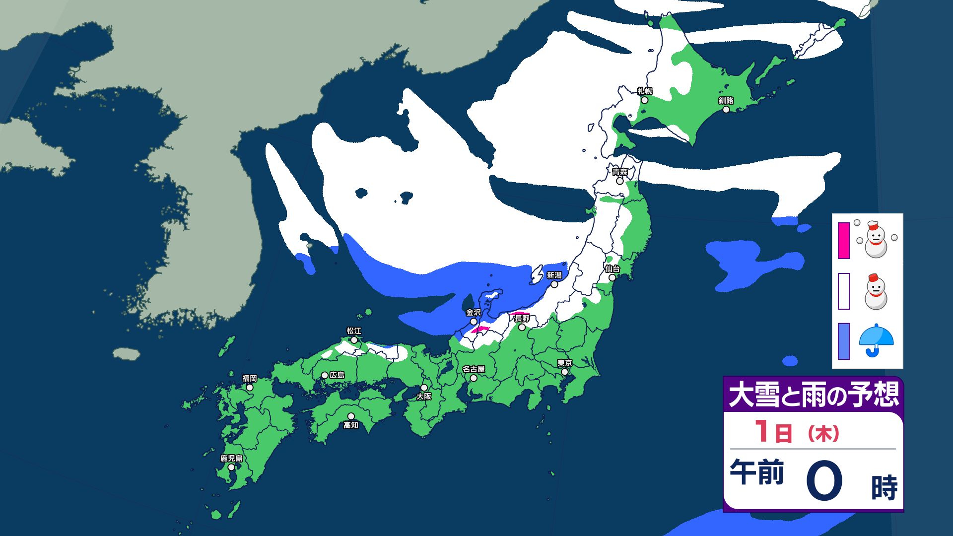 北日本~西日本の日本海側で大雪のおそれ…24時間予想降雪量は東北80cm・北陸70cm 西日本の普段雪の少ない地域でも降雪か…Uターン注意【1月1日~1月4日まで 雪と雨のシミュレーション掲載】 信越放送 2025年12月31日(水) 17:48 国内 【雪と雨のシミュレーション ~1月4日】