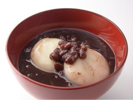 別の鍋で煮た丸餅を、甘い小豆汁に入れたもの。一般的なぜんざいに近いものですが、山陰地方ではこれが雑煮です。小豆の赤色には邪気を払う力があり、縁起が良いとされています。