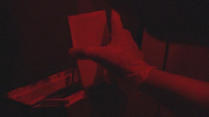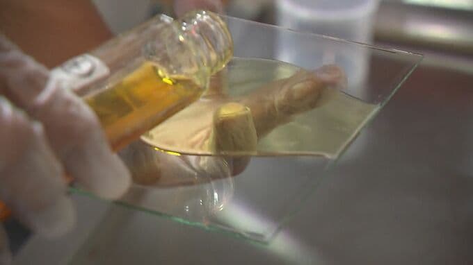 暗室で現像液をかけ、最後に定着液につけると、持ってきたカブトムシの角まできっちりと解像した湿板写真ができあがる。