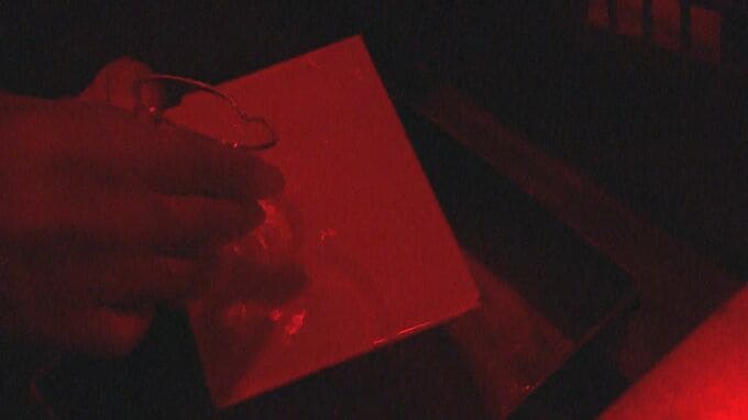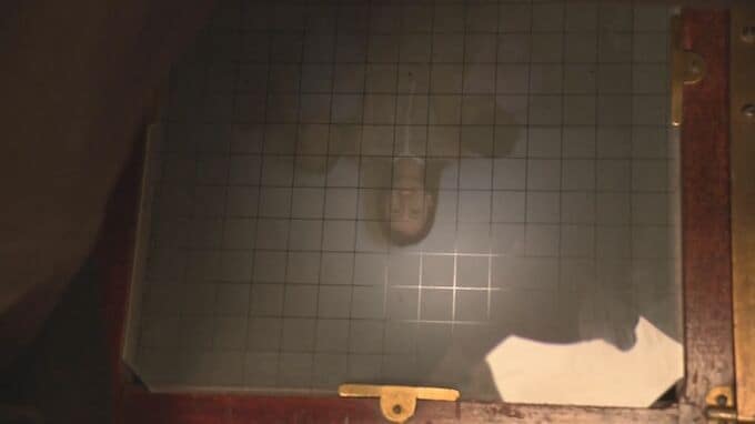 暗室状態にして、ガラス板が光で反応するように処理したら撮影。