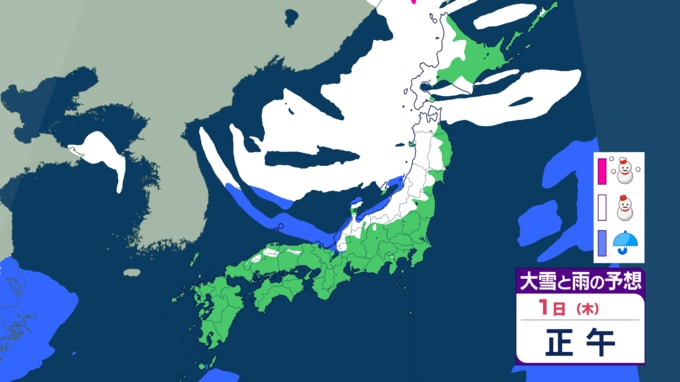 1日(元日)は、JPCZ(活発な雪雲のライン)が北陸地方を指向しています。日本海側を中心に既に雪が強まっており、3時間で3〜10cmの降雪を観測している所があります。