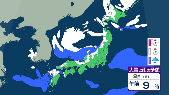 【新年大雪情報】1月2日はJPCZが西日本直撃 九州で40cm・近畿・中国で50cm降雪予想 「上空-42℃」最強寒気で積雪急増 雨雪シミュレーション 長崎放送 2026年1月1日(木) 06:43 国内 【1月2日】JPCZが「中国地方」へ南下 西日本で積雪急増 2日(金)にかけて、JPCZのラインは次第に中国地方へ南下する予想です。 本州付近の上空には氷点下39度以下の強い寒気が流れ込み、雪のエリアが西日本へ広がり、普段雪の少ない平地でも降雪となる所があると予想されています。