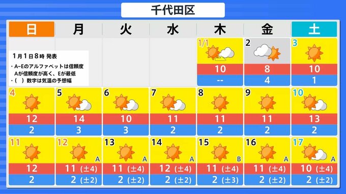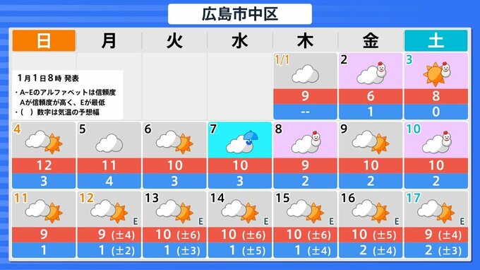 【正月寒波】日本海側を中心に「警報級の大雪」のおそれ 今季一番の寒気が流れ込む見込み【気象庁 雪雨シミュレーション/1月1日午前10時20分更新】 RSK山陽放送 2026年1月1日(木) 10:26 国内 札幌・仙台・東京・名古屋・大阪・広島・福岡・那覇の16日間天気予報 【画像㊷~】は、全国各地の今後16日間の天気予報です。 【画像㊷】 【画像㊸】 【画像㊹】 【画像㊺】 【画像㊻】 【画像㊼】 【画像㊽】 【画像㊾】