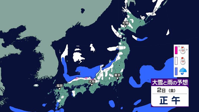 【大雪情報】北日本~西日本で日本海側中心に大雪の見込み…上空に氷点下39度以下の寒気が流れ込み強い冬型の気圧配置続く 気象庁発表[全国の雪のシミュレーションを見る(1時間ごと)] テレビ山口 2026年1月1日(木) 09:31 国内 ~2日正午までの雪のシミュレーション