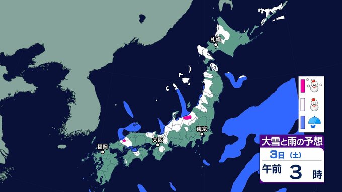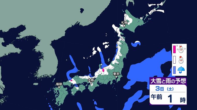 【大雪情報】北日本~西日本で日本海側中心に大雪の見込み…上空に氷点下39度以下の寒気が流れ込み強い冬型の気圧配置続く 気象庁発表[全国の雪のシミュレーションを見る(1時間ごと)] テレビ山口 2026年1月1日(木) 09:31 国内 ~3日午前6時までの雪のシミュレーション