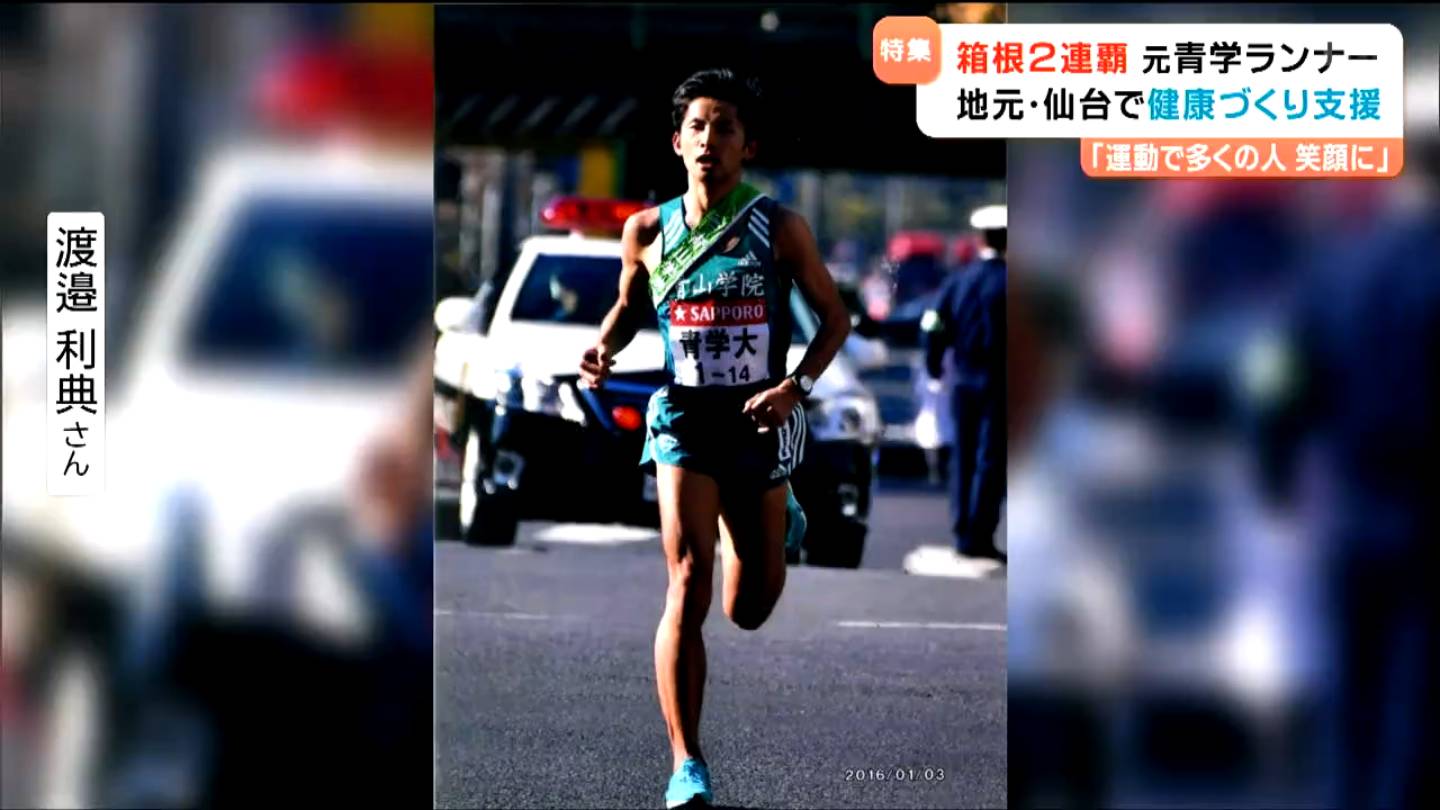 2024年5月に現役を引退した渡邉利典さんは、仙台市出身で、東北高校から駅伝の名門・青山学院大学に進みました。2015年大学3年生の時に箱根駅伝で3区5位の快走でチームの初優勝に貢献し、さらに翌年、大学4年生では10区アンカーで区間賞の走りを見せ、総合優勝のフィニッシュテープを切りました。