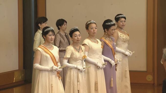 皇后さまや紀子さま、愛子さまら女性皇族はティアラを着用して臨まれました。