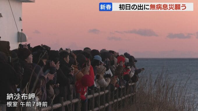 午前7時の気温がマイナス5℃を下回った、北海道根室市の納沙布(のさっぷ)岬には、「初日の出」を見ようと多くの人が詰めかけました。