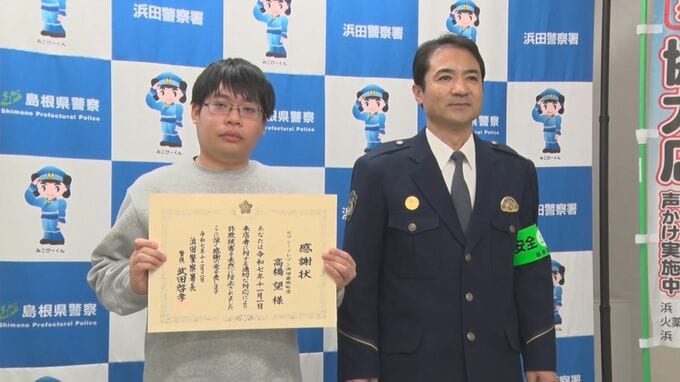 通販サイトで支払いをすると答えたことや購入手続きが不慣れな様子だったことから詐欺被害に遭っているかもしれないと思い、女性を説得して引き止め、浜田警察署に通報し、詐欺被害を未然に防ぎました。