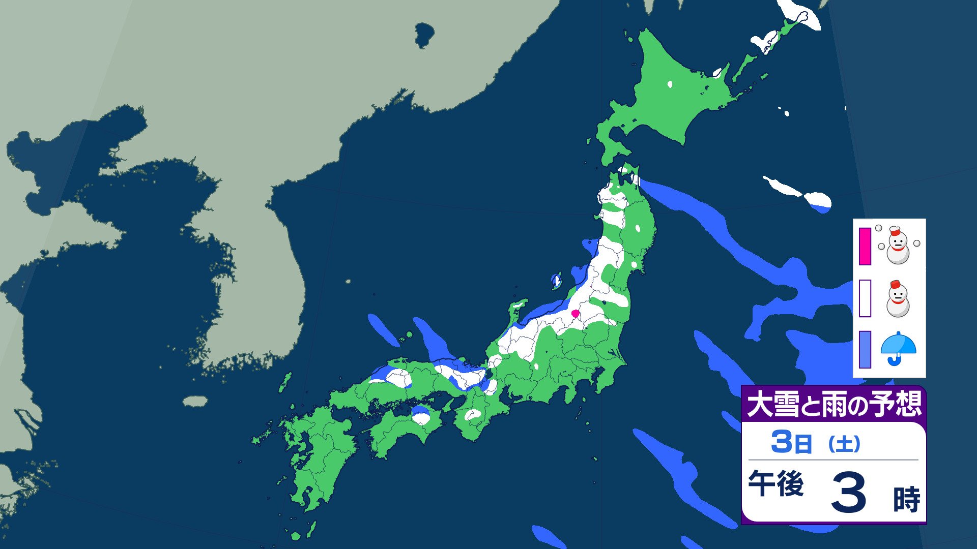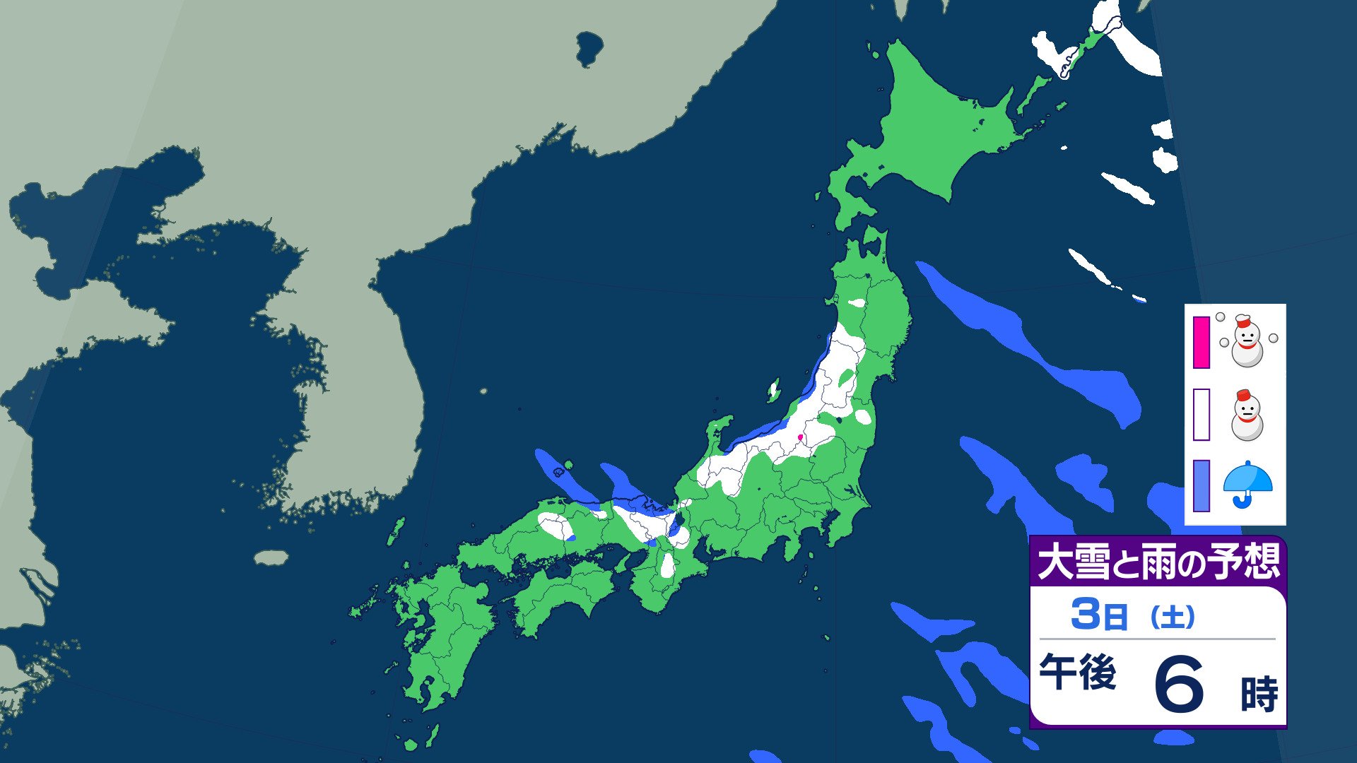 関東甲信 強い寒気が流れ込む見込み…多いところで24時間に40cmの降雪予報 関東南部の平地でも積雪 2日昼過ぎから3日にかけて 【雨と雪のシミュレーション】 チューリップテレビ 2026年1月1日(木) 16:54 国内 天気 3日の雨と雪のシミュレーション