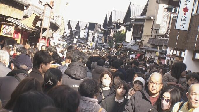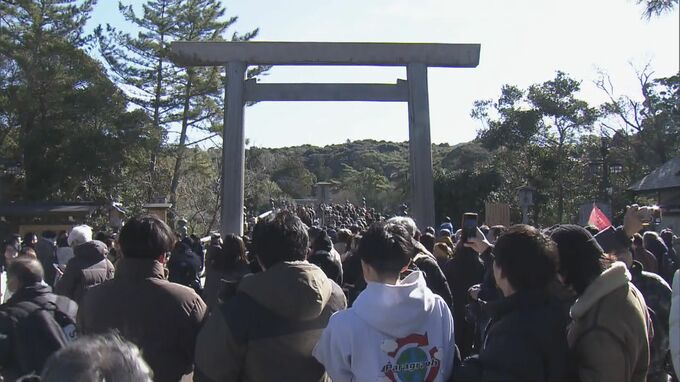 伊勢神宮内宮の宇治橋は初詣の参拝客で大混雑。三が日の参拝客数は、およそ40万人になる見込みで訪れた人は新しい年への思いを込めて手を合わせていました。