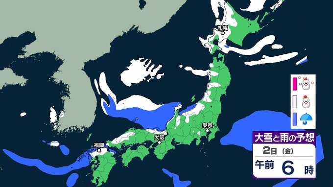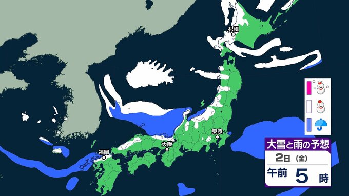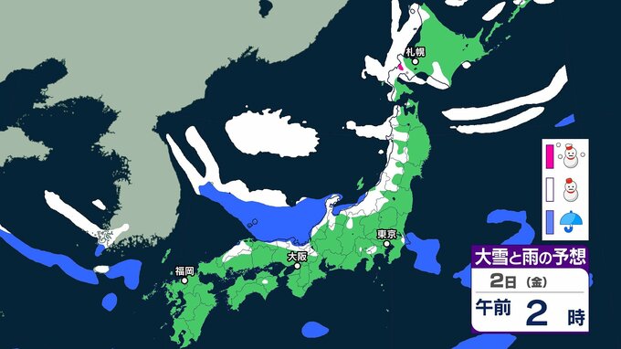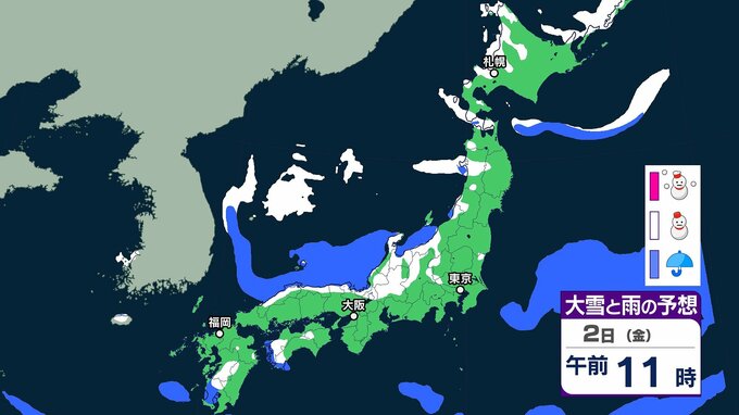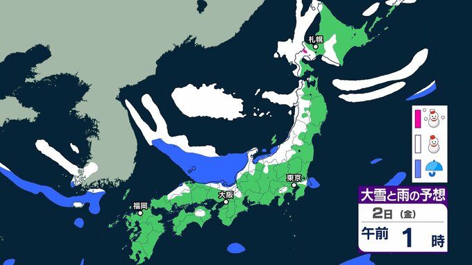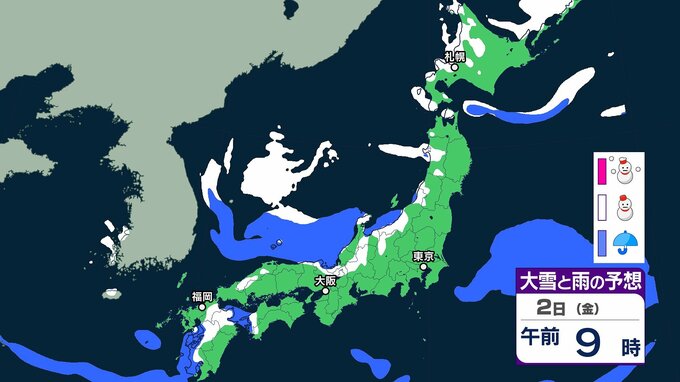【大雪情報】交通障害も含めて注意・警戒を!北日本から西日本にかけて日本海側を中心に大雪となるおそれ 気象庁発表[全国の雪のシミュレーションを見る(1時間ごと)] テレビ山口 2026年1月1日(木) 17:14 国内 ~2日午前11時までの雪のシミュレーション