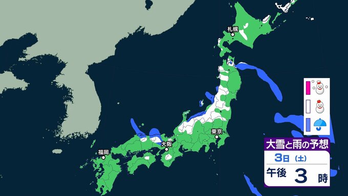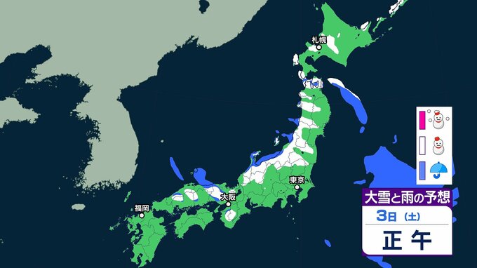【大雪情報】交通障害も含めて注意・警戒を!北日本から西日本にかけて日本海側を中心に大雪となるおそれ 気象庁発表[全国の雪のシミュレーションを見る(1時間ごと)] テレビ山口 2026年1月1日(木) 17:14 国内 ~3日午後11時までの雪のシミュレーション