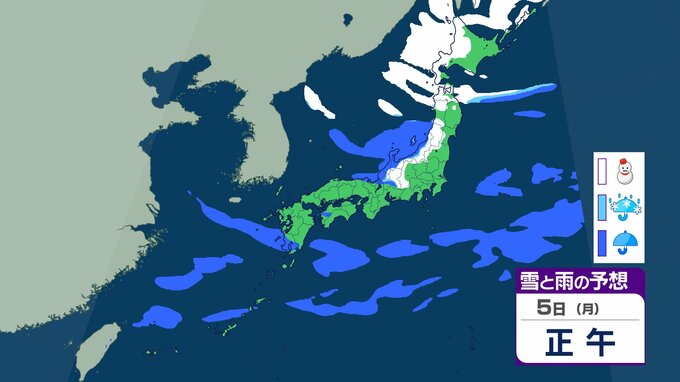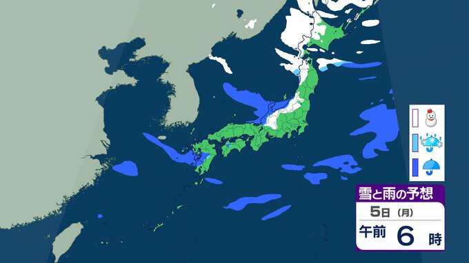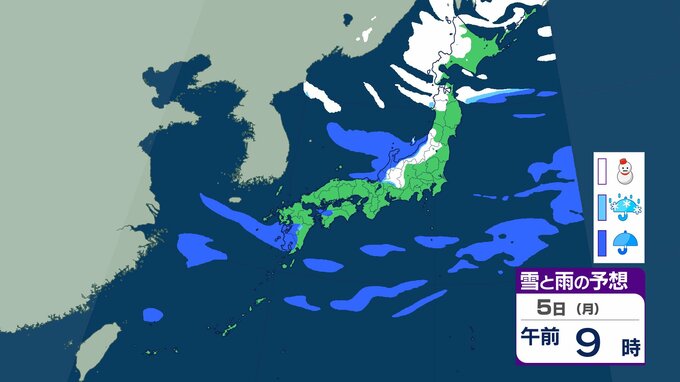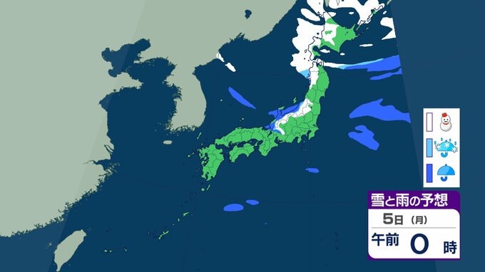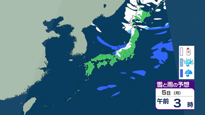 【正月寒波】日本海側を中心に「警報級の大雪」のおそれ 北陸では24時間で70㎝の降雪も 今季一番の寒気が流れ込む見込み【気象庁 雪雨シミュレーション/1日午後10時更新】 RSK山陽放送 2026年1月1日(木) 22:00 国内 1月5日(月)雪と雨のシミュレーションをみる 5日(月)3時間ごとの雪と雨のシミュレーション【画像㉖~㉝】 【画像㉖】 【画像㉗】 【画像㉘】 【画像㉙】 【画像㉚】 【画像㉛】 【画像㉜】 【画像㉝】