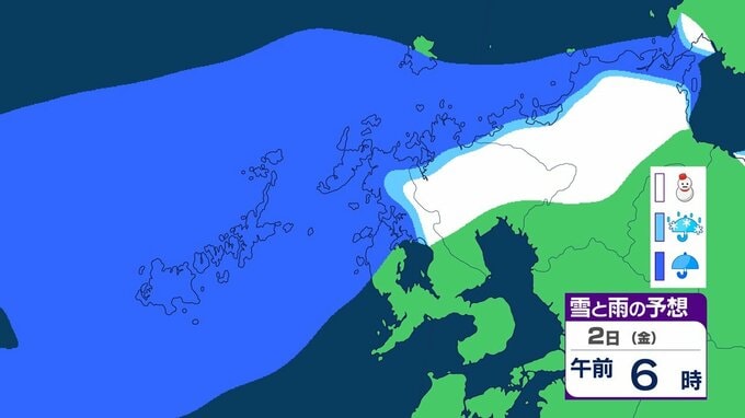 このため、長崎県では1日夜から雪が降り始め、2日の明け方から3日の午前中にかけて、平地、山地ともに大雪となる恐れがあります。