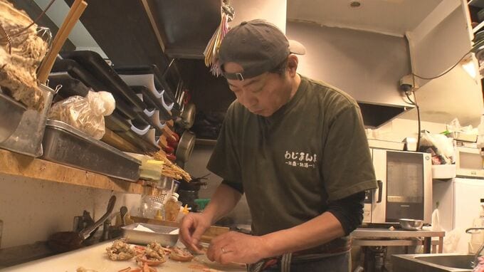 2025年12月。楠さんは、石川県産のズワイガニのメス=香箱ガニの身を取り出し、甲羅に丁寧に盛り付けていた。