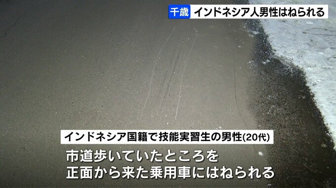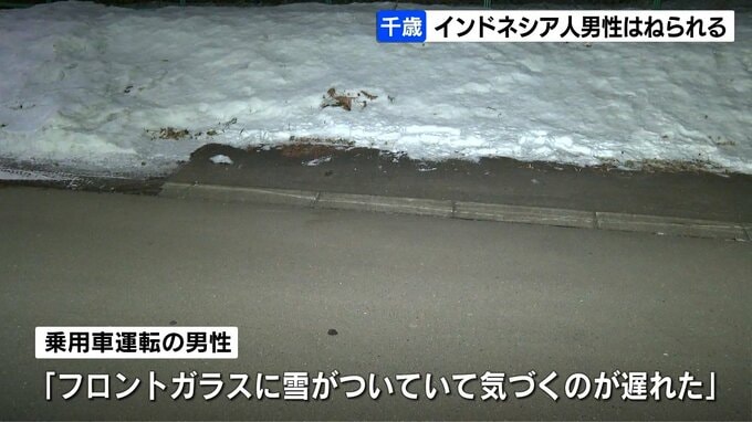 1日午後、北海道千歳市の住宅街でインドネシア人の男性が乗用車にはねられました。運転していた男性は「フロントガラスに雪がついていて気付くのが遅れた」と話しているということです。