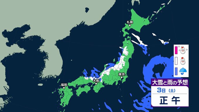 【大雪情報】北陸地方で70センチ・近畿地方で60センチの降雪予報も(多いところで)九州北部地方では3日にかけて交通障害に警戒を[全国の雪のシミュレーションを見る(1時間ごと)]気象庁発表 テレビ山口 2026年1月2日(金) 08:29 国内 ~3日正午までの雪のシミュレーション(全国・1時間ごと)