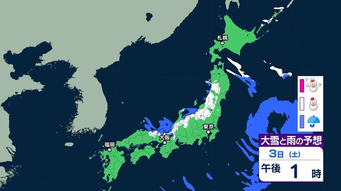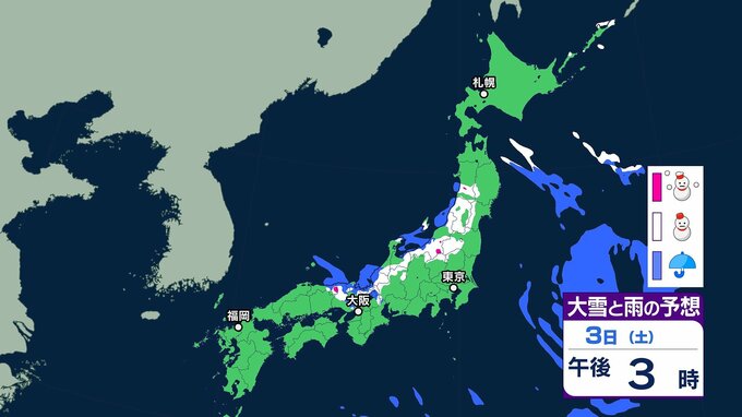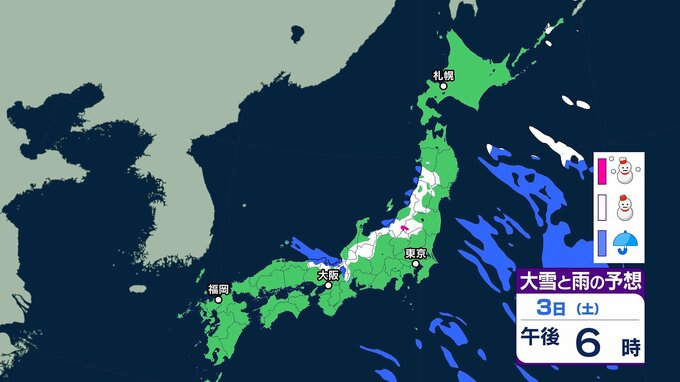 【大雪情報】北陸地方で70センチ・近畿地方で60センチの降雪予報も(多いところで)九州北部地方では3日にかけて交通障害に警戒を[全国の雪のシミュレーションを見る(1時間ごと)]気象庁発表 テレビ山口 2026年1月2日(金) 08:29 国内 ~3日午後6時までの雪のシミュレーション(全国・1時間ごと)