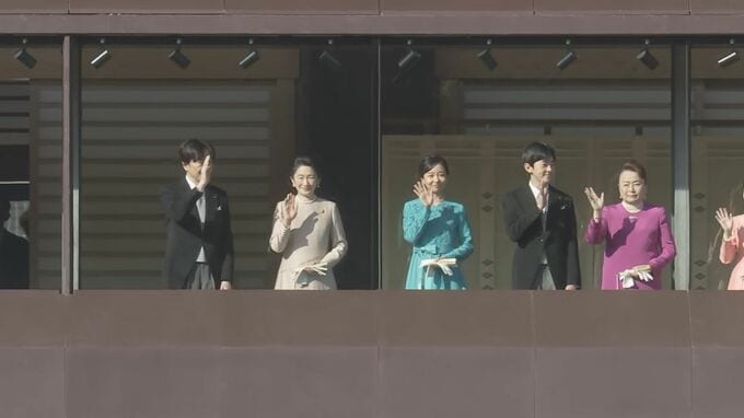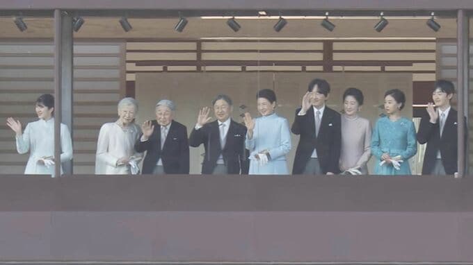 両陛下や皇族方は、あわせて5回、国民の祝賀に応えられる予定です。3回目のお出ましの最後には、天皇皇后両陛下、上皇ご夫妻、秋篠宮家の9人がそろって中央に寄り、祝賀に応えられる場面もみられました。