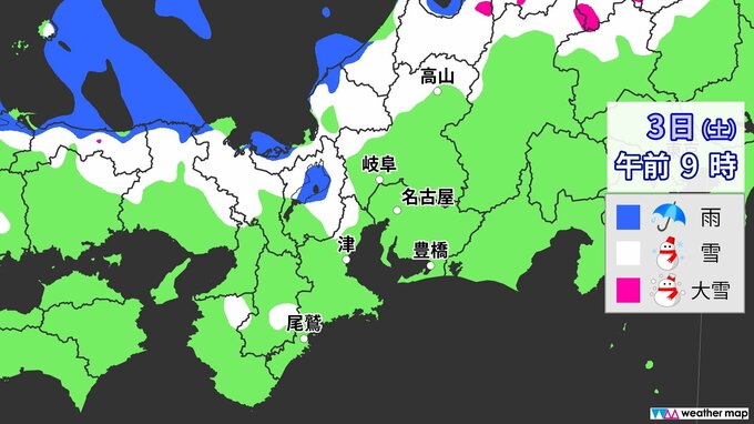 【大雪情報】2日夜から3日昼前まで 三重県中心に大雪のおそれ 最新の雪・雨シミュレーション 路面凍結による交通障害に注意 5日朝までの予想降雪量は (1/2 13時) CBCテレビ 2026年1月2日(金) 13:13 国内 地震・災害 4日朝までの予想降雪量(多い所) <24時間予想降雪量(多い所)> (4日午前6時まで) 〇三重県 北部 10センチ 伊賀 10センチ 中部 5センチ 伊勢志摩 0センチ 紀勢・東紀州 1センチ