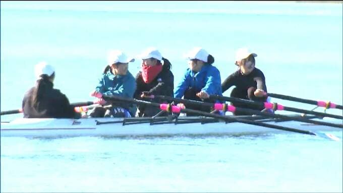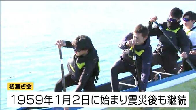 新春恒例のボートとカヌーの初漕ぎ会が石巻市で行われ、地元の高校生らが今年1年の活躍を誓いました。